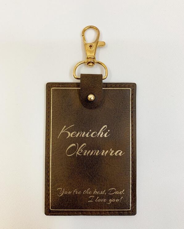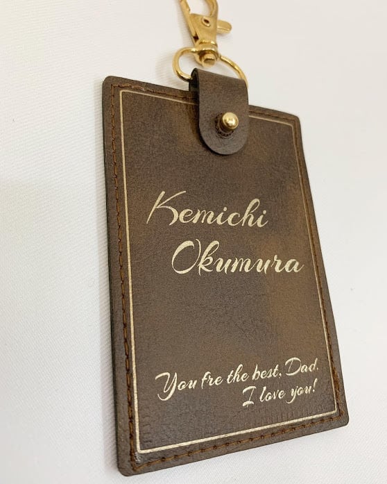 レザーネームプレートの片面フリーデザインで彫刻できます!