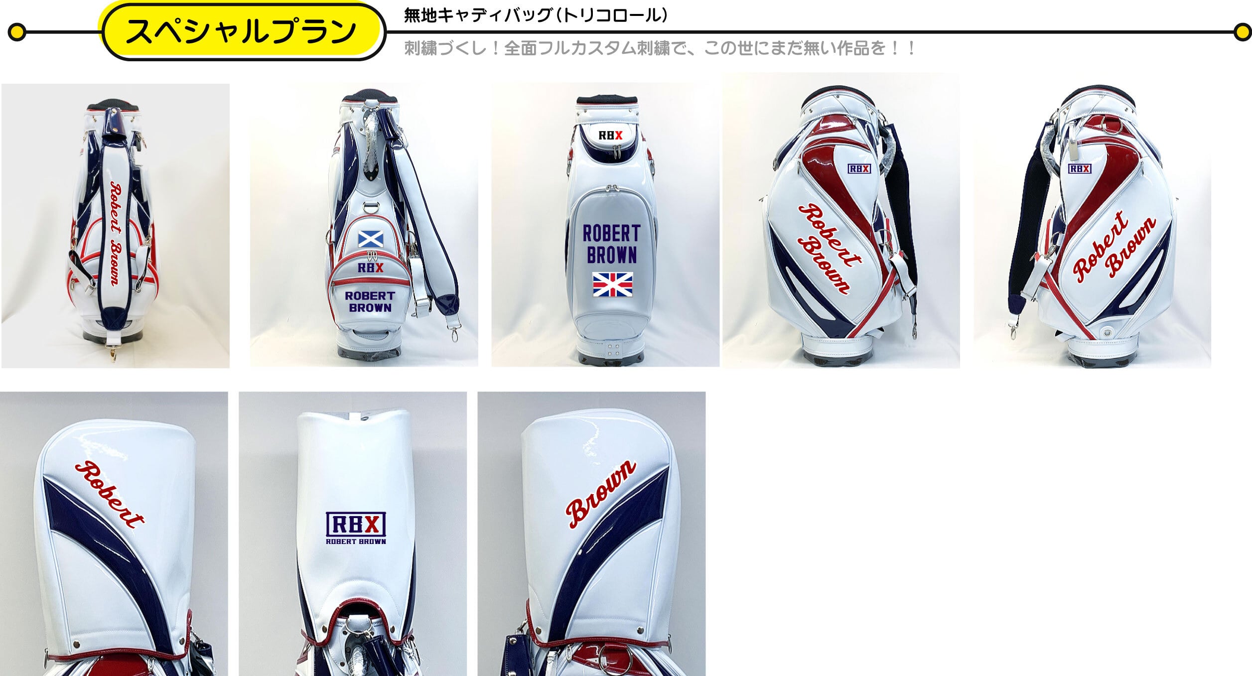 ★刺繍が可能な箇所にはすべて刺繍で埋め尽くす、フルカスタムスペシャルプランです。想いのすべてをこのバッグに集約し、何かの記念に、ゴルフ人生の一生の相棒に、いかがでしょうか。