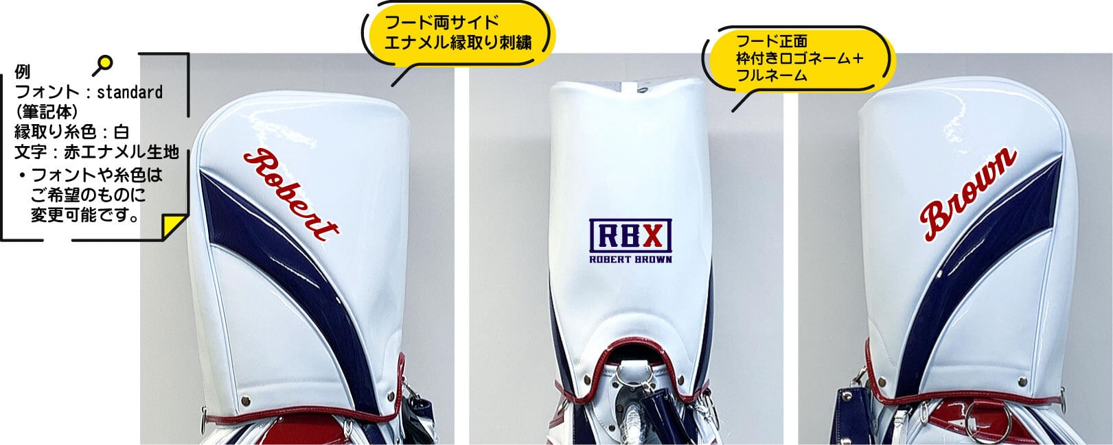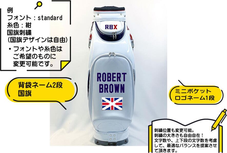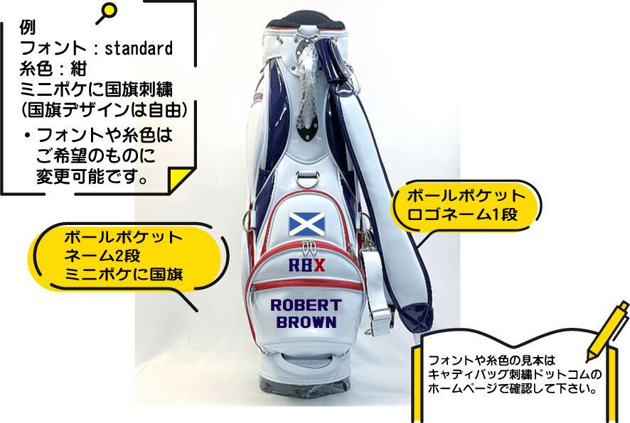 完全無地のキャディバッグに、オリジナル刺繍を施し、あなただけのオリジナルキャディバッグが購入できます。